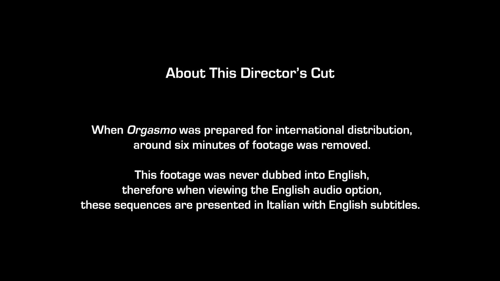 - Audio Commentary with Mondo-Digital's Nathaniel Thompson & Troy Howarth, Author of 'So Deadly So Perverse: 50 Years Of Italian Giallo Films'