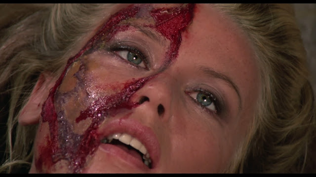 We also get the mandatory basement laboratory in the mansion where the skin-graft surgeries occur, it's a cheap looking Gothic set with blood-filled medical beakers and flasks strung together with an assortment of medical tubing and the cheapest looking electricity generating machine you have ever seen. The gore and make-up effects are of the sub-Blood Feast variety with cheesy looking seared flesh and poorly designed skin transplants. We also get some cheap looking grue by way of women with their faces peeled off, it's kind of shit-looking, but if your a Euro-cult fan it's delightful in it's shoddiness. Interestingly these were done by none other than Italian special effects legend Carlo Rambaldi (King Kong), not his best work, not by a long shot.
