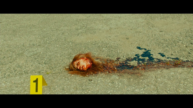 Audio/Video: Random Acts of Violence (2019) arrives on region-free Blu-ray from Acorn Media International in 1080p HD framed in 2.38:1 widescreen. This is a digital shot film and it looks great, lots of artful lighting and inventive staging of the gore set-pieces with an abundance of fine detail in the close-ups of the gruesome stuff. It's a stylized looking film with uneven contrast and color-grading that enhances the unhinged mood of it, to me it sort of had a House of A 1000 Corpses vibe to it visually. Audio comes by way of English DTS-HD MA 5.1 with optional English subtitles, offering plenty of bombastic bass and nice use of the surrounds during the action/attack sequences.