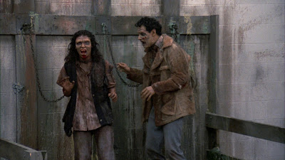Of course George A. Romero's use of social commentary is fully intact here, it may not be as in-your-face and/or as goofy as the consumerism critique of Dawn but it's there, this time out Romero plays with the tensions between the scientists and the military, and it's pretty tense stuff. Can you imagine being holed-up in an underground cavern, zombies are encroaching at an alarming rate, soldiers are dying at a steady clip, and the lead science guy wants to train the undead! All the while the military presence is becoming increasingly unhinged and hostile, it's a ripe recipe for apocalyptic conflict, a pretty bleak film from the top down. It's much darker than the previous entry, and not just because it's set underground, it's a depressing watch and one without the benefit (or detriment, depends on your view) of the occasional comedy breaks we had with Dawn, which may be why I prefer the Argento cut of Dawn, it removes a lot of the goofiness of Romero's cut.