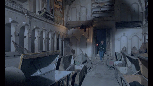 Audio/Video: Demonia (1990) arrives on region-free Blu-ray from Severin Films with a new brand new 4k scan of the original camera negative framed in 1.66:1 widescreen, presented in 1080p HD. The flick is advertised as being "scanned in 4k from the original negative recently discovered in the attic of a Collevecchio convent", yeah, okay, I guess those nuns were huge Fulci fans, who knew? This Fulci film has always been a bit of an ugly looking entry, shot with heavy lens filtration that gives it a foggy shroud that's not always pleasant to look at. It also suffers from some technically issues that looks to be either over-exposed and/or overly diffused film. This new 4k scan does take a bit of the edge off those shortcomings, offering a bit more clarity and detail in the close-ups occasionally, but it's still not a pretty sight. That said the foggy and darker interior scenes are better resolved with some decent fine detail, and the colors are more vibrant and deeper than what I've seen before, so it is a quantifiable improvement over the previous release.