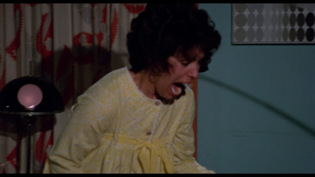 Count Yorga (Robert Quarry, Rollercoaster) returns after his seeming demise in the first film, resurrected by the supernatural forces of the Santa Ana winds of Northern California. This time Yorga takes up residence in a very fine looking manor conveniently located right next to an orphanage for children, which promises a steady flow of fresh blood for himself and his harem of vampire-brides. Yorga and his brides are introduced when a young boy from the orphanage finds himself in a most unfortunate place, a forgotten cemetery after dark. As we all know, nothing good happens at the cemetery after dark. Yorga's vampire brides rise up from their graves and Tommy becomes a victim to Yorga, and is turned into one of his evil minions. Later that evening Yorga attends a Halloween masquerade ball at the orphanage where he meets Tommy's older sister Cynthia Nelson (Mariette Hartley, of the made-for-TV movie Genesis II), and the vampire become instantly infatuated with the young woman, hoping to make her one of his undead vampire-brides. This one has a pretty great Night of the Living Dead style siege scenario with the vampire brides attacking a Cynthia's family, it's pretty great stuff, and makes for an amped up start to things.
