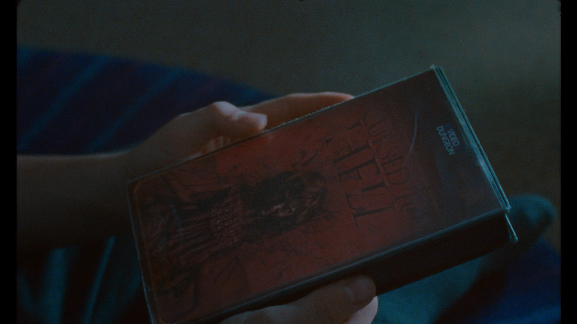 Audio/Video: Censor (2021) arrives on standard edition region-B locked Blu-ray from Second Sight Films in 1080p HD widescreen. The HD image is strong and nicely texturized, the reality bits of 80's Thatcher England looking grey and droll by design with the horror elements infusing garish colors and Argento-esque colored lighting, which translates nicely to HD, sourced from a largely shot on 35mm and 16m source. The aspect ratio changes from 2.39:1 to 1.33:1 to convey reality versus watching video nasties on VHS tape, and later changes to correspond to the unreality of the cracked-psyche of the protaganist, the VHS images of made-up video nasty titles being recreated to have that garish, smeary low-def look to it. Audio comes by way of English DTS-HD MA 5.1 with pptional English subtitles. Dialogue is crisp and cleanly delivered, the sound design delivers a full-bodied mix, and the score from Emilie Levienaise-Farrouch is ratcheted up in the more tense and terror-filled moments punctuating the onscreen imagery with an appropriately tense score.