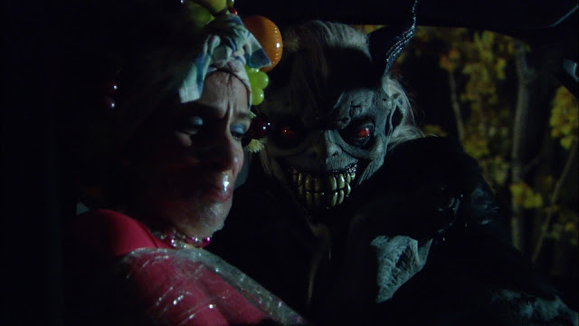 Shot on the cheap but nicely realized with plenty of Halloween sprit the movie is an annual Halloween favorite of mine, with some solid performances, especially the creepy pantomime turn from Joshua Annex as Satan. The guy doesn't utter a word but used hand gestures and suggestive tilts of his masked head to convey a lot. Winnick as the sister is also quite good, and I think Brickel as the naïve kid detached from reality pulls it off. Of course veteran actor Amanda Plummer is great, giving an at times unhinged performance as Dougie's mom, who seems just as detached from reality as the kid!
