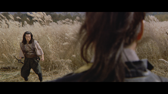 Audio/Video: Never before released on home video Haunted Samurai (1970) arrives debuts on Blu-ray from new boutique label Surviving Elements (with some help from DiabolikDVD) in 1080p HD framed in 2.35:1 widescreen using the alternate international Shinobi Demon: Duel in the Wind title card. Not sure about the source but I thought it looked very good HD, the source is in good shape, colors for the most part are quite solid, and though some softness creeps into a few exterior scenes, and grain levels wax and wane, overall I was pleased, especially coming from a label called Surviving Elements - which sort of sets the expectations a bit low, but this look pretty great. Audio comes by way of Japanese DTS-HD Mono with optional English subtitles. The track is solid and largely free of any source related issues other than some very light hiss now and again.